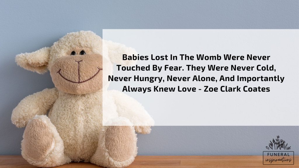 “Babies lost in the womb were never touched by fear. They were never cold, never hungry, never alone, and importantly always knew love.” – Zoe Clark-Coates