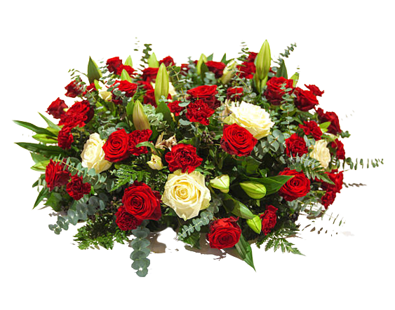 Interflora can make for you a casket spray with bright carnations and orchids. They can put half of the spray in pink roses and the rest in beautiful white roses.