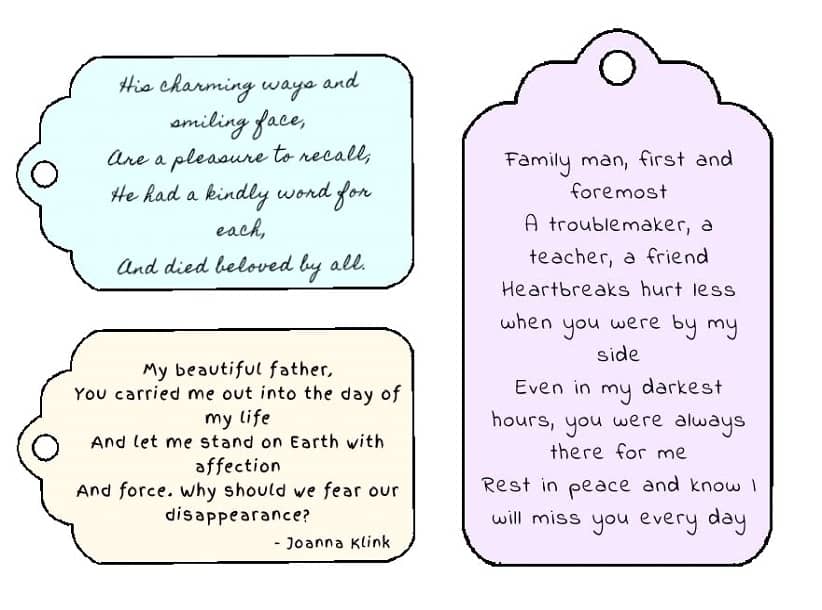Dad Short Verses for funeral flower Cards